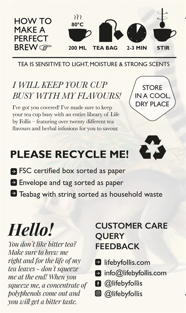 Varje tepåse är individuellt förpackad i ett tätt kuvert för att bevara teets kvalité och den unika aromen. 20 tepåsar/ask.